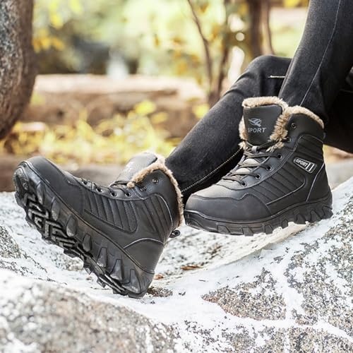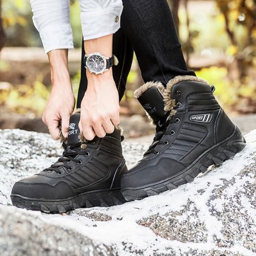 Men's Winter Snow Boots: Warm Lining, Anti - Slip. Mid - Top Leather Sneakers for Hiking, Working, Driving & Outdoor Trekking. Lightweight & Waterproof. 5
