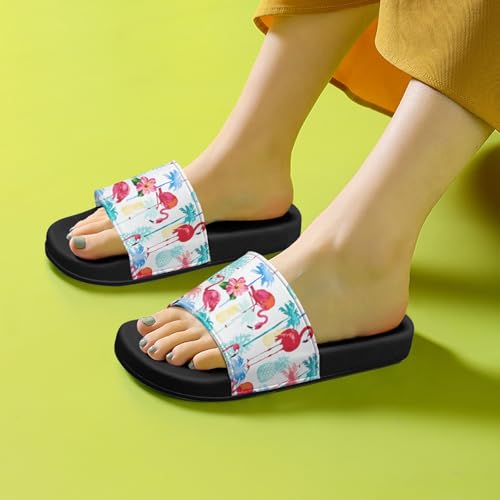 Flamingo Gold Pineapple Design Slippers Sandals for Women Men Casual Athletic Sandals Pool Shower Indoor Outdoor Slide Slippers 7