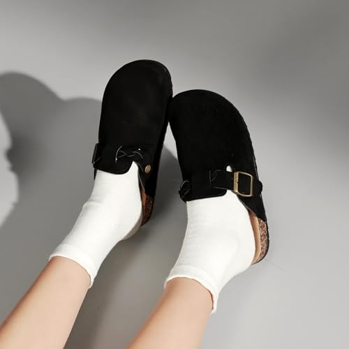 Suede Clogs for Men Soft Cork Footbed Women's Clogs Mules with Arch Support, Adjustable Buckle Comfort Leather Potato Shoes, Slip-On Closed Toe Slippers 6