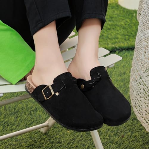 More information about Suede Clogs for Men Soft Cork Footbed Women's Clogs Mules with Arch Support, Adjustable Buckle Comfort Leather Potato Shoes, Slip-On Closed Toe Slippers