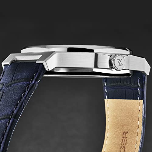 • Manager Men's 'Open Mind' Blue Dial Blue Leather Strap Automatic Watch MAN-RO-03-SL
