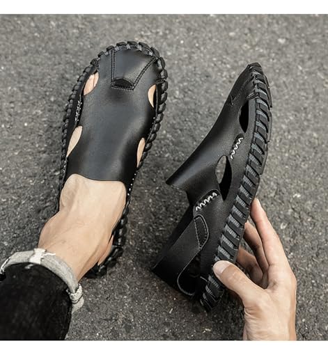 Men's Genuine Leather Cutout Fisherman Sandals Hand Stitched Fashion Comfortable Closed Toe Beach Walking Shoes 7