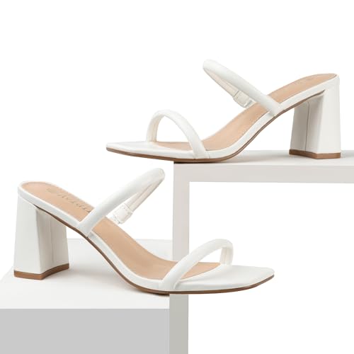 Women's Square Open Toe Heeled Sandals Two Strap Mules Slip On Block Chunky Mid Heels Sandals 6