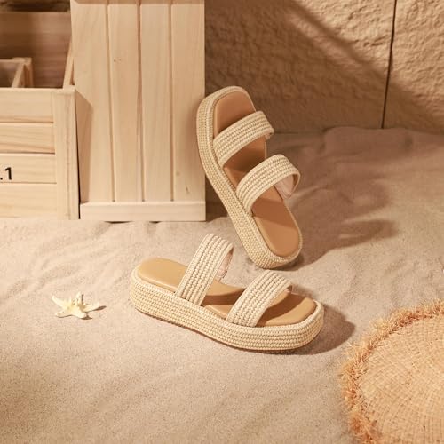 Erocalli Platform Sandals Women Cute Wedge Espadrilles Slip on Summer Beach Raffia Vacation Sandal Comfortable Open Toe Dressy Shoes 6
