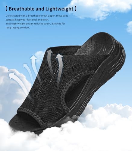 • 【Breathable and Lightweight】 Constructed with a breathable mesh upper, these slide sandals keep your feet cool and fresh. Their lightweight design reduces strain, allowing for long-lasting comfort.