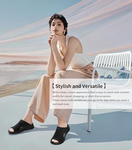 • 【Stylish and Versatile】With a clean, simple appearance that is easy to match with summer outfits for casual, shopping, or short trip occasions. These casual slide sandals are your go-to for days when you want a laid-back look.