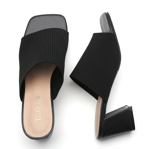 More information about Tilocow Knit Heeled Sandals for Women, Square Open Toe Heels Sandals, Chunky Block Low Heel Slip On Mules