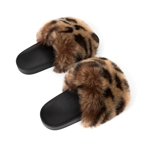 More information about FUNKYMONKEY Women's Slides Faux Fur Cute Slip On Fuzzy Slippers Comfort Flat Sandals