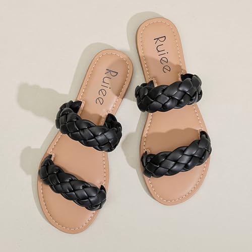 Women's Flat Slides Sandals, Summer Slippers Comfortable Braided Strap Round Open Toe Casual Beach Shoes for Women. 6