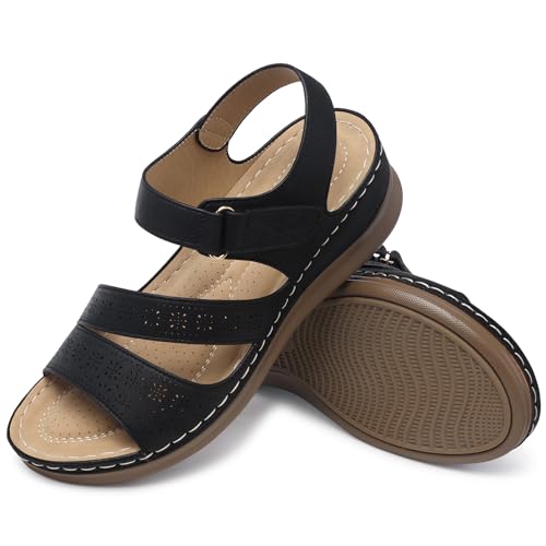 SHIBEVER Women's Wedge Sandals Platform: Comfortable Dressy Arch Support Ankle Strap - Summer Open Toe Women Sandals 6