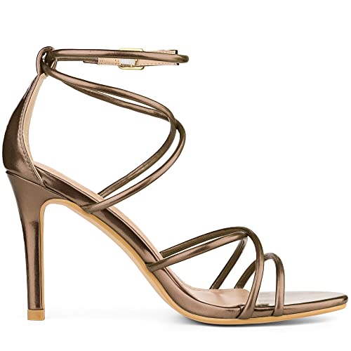 Allegra K Women's Open Toe Strappy Straps Stiletto Heel Brown Sandals 7.5 M US 4
