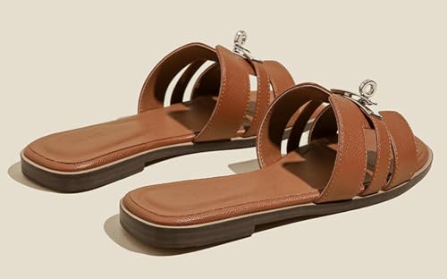 Women's Flat Sandals Casual Slip On H-Band Slippers for Women Leather Dressy Square Open Toe Summer Beach Vacations Slides Sandals 7