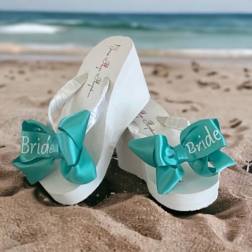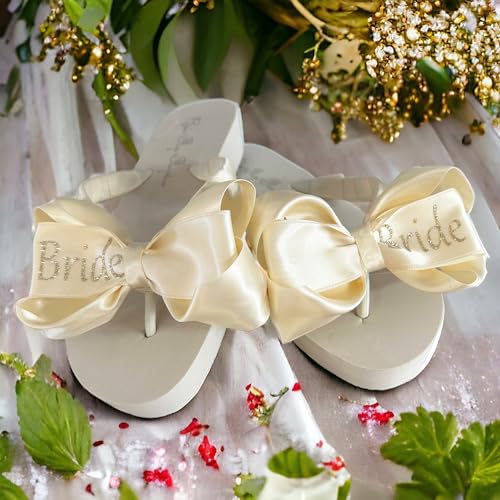 Gold Bride Glitter Bling Bow Flip Flops for the Wedding 7