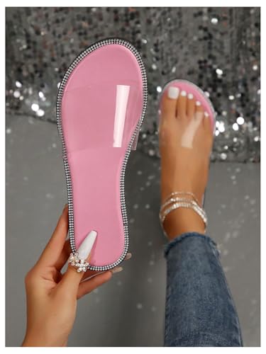 OYOANGLE Women's Clear Flat Sandals Glitter Rhinestone Open Toe Transparent Beach Slide Sandals 5