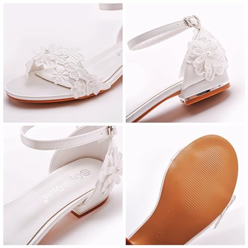 Generic Bridal Wedding Shoes Low Heel Lace Wedding Sandals Open Toe Ankle Strap Evening Party Summer Shoes 2Cm Prom Dress Shoes 4