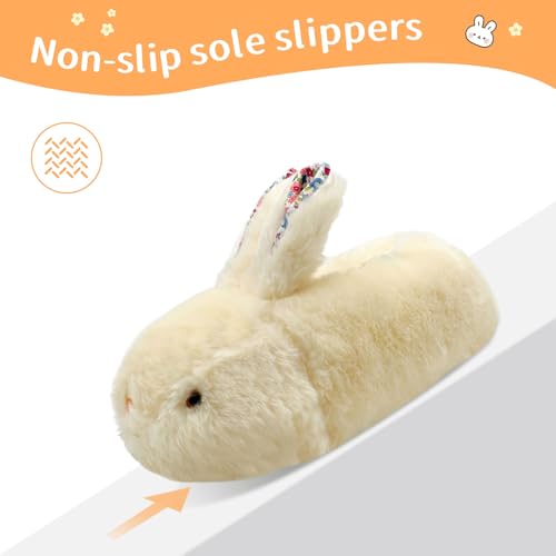 • FLUFFY AND COMFORTABLE: Slippers have cute bunny shapes, these adorable slippers are the perfect gift for bunny loving girls. The thick fluffy upper design makes the slippers more adorable. The slippers are made of soft plush material and filled with high quality cotton, so your feet won't feel cold in winter.