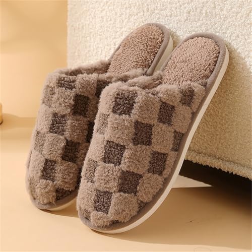 HOT ! Checkered Slippers for Women Memory Foam, Warm Cozy Plush Non-Slip Slippers, Comfy House/Home Shoes, Winter Men