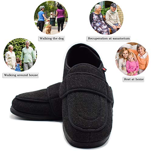 • HOUSE SHOES for WOMEN WIDE WIDTH-- Warm and soft woollen fleece fabric wrap your feet keep you feel warm and comfortable, combined with velcro adjust the heel and front , provide extra width and depth roomy to air circulation for walking. Easy slip on/take off, and reduce extrusion for wide feet,Thumb valgus, swollen feet, diabetic or hammer toe, especially if you have wide-width feet.