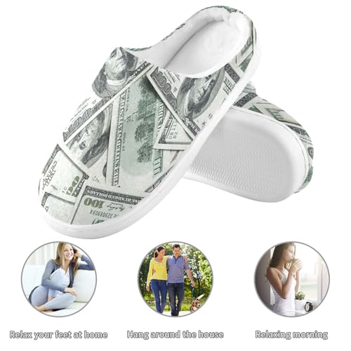 Funny American Dollar Slippers for Women Men, Money Womens House Memory Foam Slippers Indoor Slipper Socks House Shoes Bedroom Travel Shoe 4