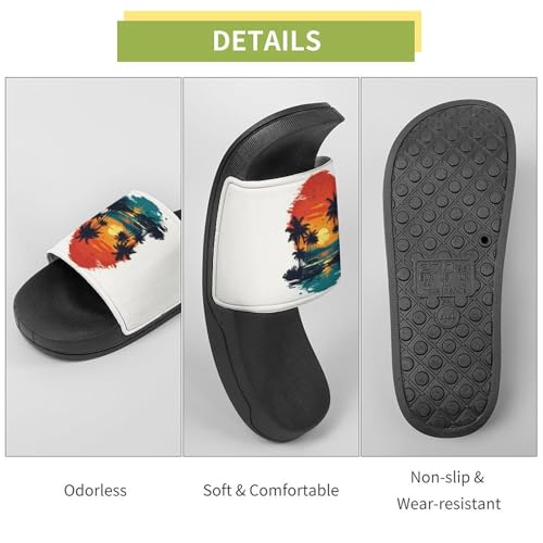 More information about Coconut Tree Sunset Funny House Sandals Non Slip Shower Slippers Quick Drying Bathroom Shoes for Women Men