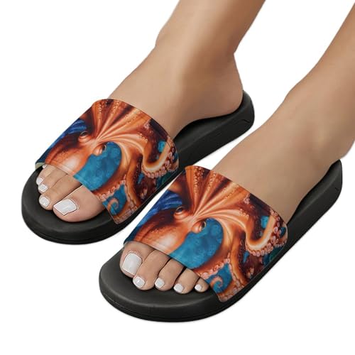 Death Octopus Funny House Sandals Non Slip Shower Slippers Quick Drying Bathroom Shoes for Women Men 7