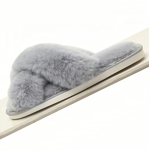 HOT ! Slippers for Women Fluffy Cross Band Open Toe Slippers Non-slip House Slippers Cozy Soft Bedroom Hospital Indoor Outdoor Slipper