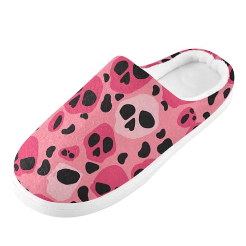 JUNZAN Halloween Skull Leopard Camouflage Pink Women Cotton Slippers Non Slip Memory Foam Mens Slippers for Hospital Birthday Presents 6-7 4