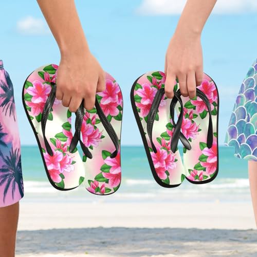 Sinestour Azalea Pink Flowers Flip Flops for Beach Thong Sandals Anti-slip Lightweight Flat Slippers for Summer Swim Travel 1