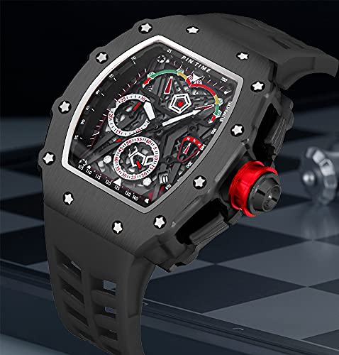 Gosasa Mens Unique Punk Bling Iced Out Dress Watches Tonneau Rectangle Watches for Men Waterproof Analog Chronograph Sports Work Mens Wrist Watch Luminous Silicone Band 1