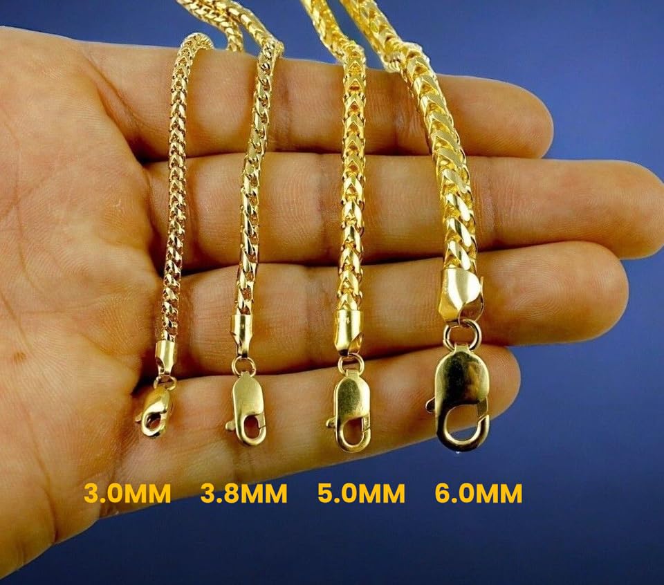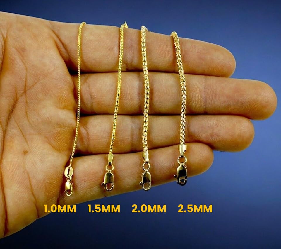 More information about 14K Yellow Gold Solid Franco Round Box Chain Bracelet Necklace Real Gold Men Women Jewelry 2.50g-124.10g | 1.5mm-5.0mm | 7 inches-30 inches | MADE IN ITALY