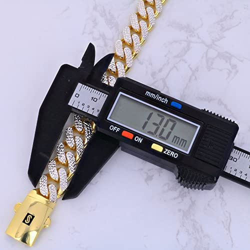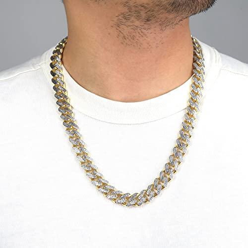 Nuragold 10k Real Yellow Gold Royal Monaco 13mm Miami Cuban Diamond Cut Pave Link Necklace (20"-30") Two Tone Italian Jewelry for Men 7