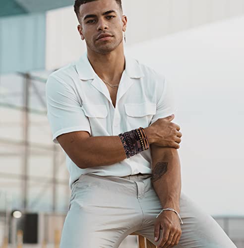 • PERFECT GIFT--Brown Leather Bracelet, Trendy and Classic Cuff Bracelet Wristbands Design, Cool and Punk, Never Out Of Style, Easily Matching With Any Occasion Like Daily Wear, Working, Traveling or Partying,Fashion Bracelet Collection Show Your Personality Everyday.