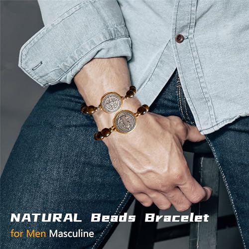 More information about 2Pcs San Benito Bracelet Tigher Eye Bracelet Saint Benedict Medal Catholic San Benito Medalla