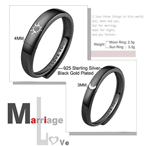 • ❣ Smooth Black Gold Plated Sun and Moon Rings Engraved I love You. How sweet to see the words when you are in love.