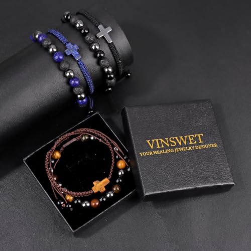 • 【Inspiration Design】This men's bracelet has a range of unique design matches, made up of a triple protection bracelet and a Hematite cross bracelet as a combination set.Whether worn alone or stacked with other bracelets, this crystal bracelet adds a trendy and chic touch to any outfit, making it perfect for both casual and formal occasions.