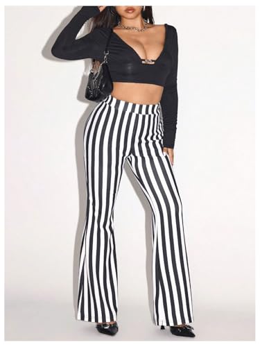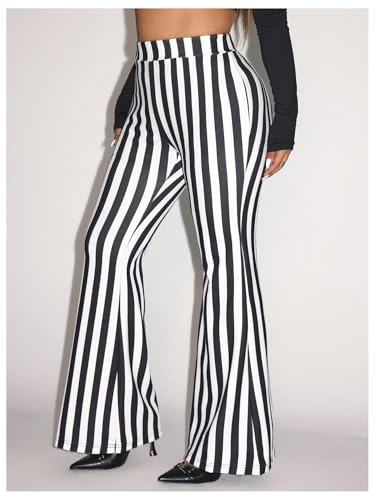 WDIRARA Women's Plus Size Striped Flare Pants Elastic Waist Bell Bottoms Pants 6