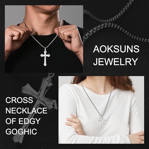 • Stylish Edgy Gothic Cross Necklace: Edgy gothic men's pendant necklace and it has beveled edges. High polished and shinny on both sides of cross, unique frosted design on the surface of cross. With strong and sturdy stainless steel silver Rolo chain. The mens cross necklaces are very good for daily wear