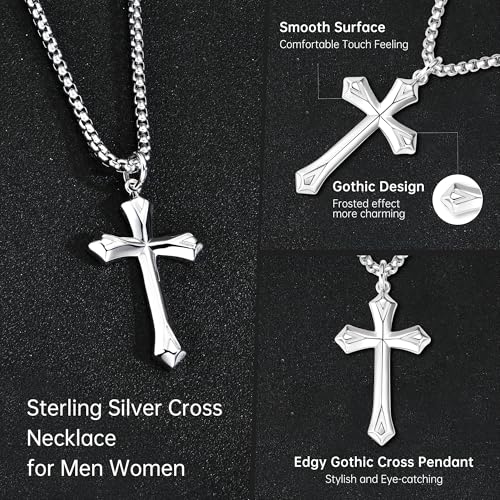 • Quality Material: The religious cross necklace is made of S925 Sterling silver beveled edge cross pendant and strong durable stainless steel rolo chain. High polish shiny pure S925 sterling silver cross with 18k white gold plated and partially frosted, authenticated with S925 stamped on the back. Great and popular jewelry material, strong and durable. Hypoallergenic, suitable for sensitive skin and will never tarnish. This stylish beveled edge cross necklace accessory adds a touch of sophistication to any outfit