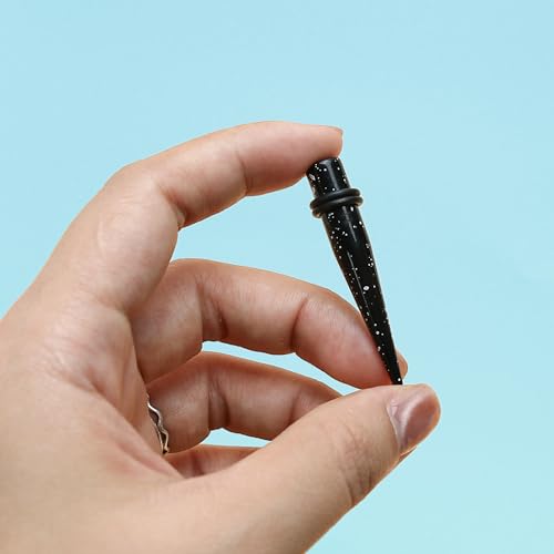 • Size and Colors: Acrylic plugs and tapers for ears: 14G (1.6mm), 12G (2mm), 10G (2.4mm), 8G (3.2mm), 6G (4mm), 4G (5mm), 2G (6mm), 0G (8mm), 00G (10mm). Gauges Tunnels: 8G, 6G, 4G, 2G, 0G, 00G, 12 mm. Black and white splatter color gauges kit.
