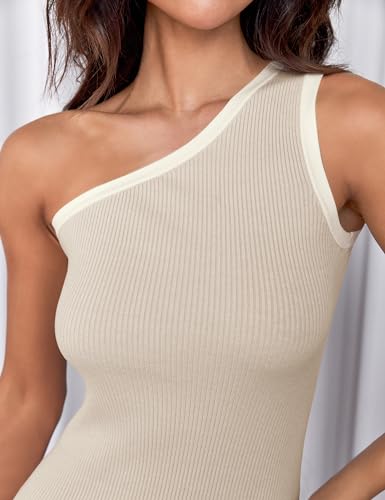 More information about ZESICA Women's 2025 Summer One Shoulder Bodycon Midi Dresses Casual Sleeveless Ribbed Knit Side Slit Sweater Dress