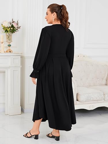 Plus Size Maxi Dress for Curvy Women Long Puff Sleeve Crewneck Stretchy Empire Waist A-line Flowy Outfits with Pockets 6