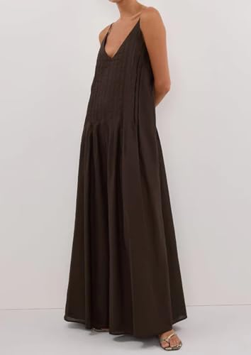Summer Spaghetti Strap Tuck Maxi Dresses for Women 2025 Vacation V Neck Sleeveless Beach Long Boho Sundress 6