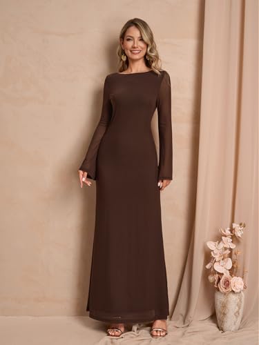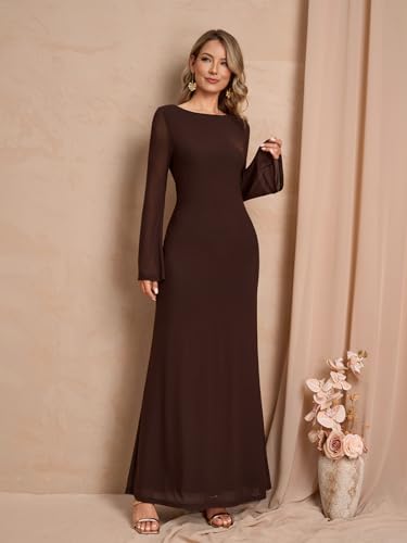 • Stylish Design: Long sleeve fall dresses, bodycom maxi dress with sexy backless and crew neck design, sheer mesh sleeve, slim fit and maxi length make long formal dresses for women looks classy and charming
