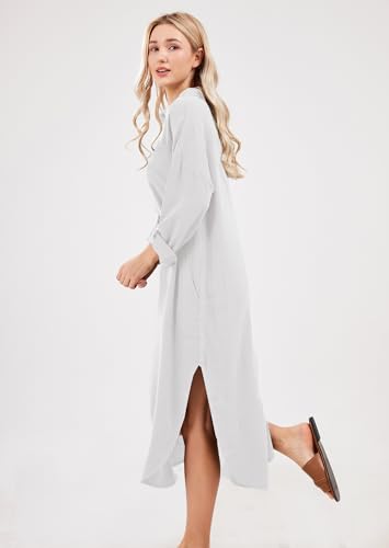 • 【STYLISH DESIGN】This cotton linen shirt dress for women features cuffed sleeve, button at neckline is chic and trendy. This long shirt dress is perfect for the woman who wants to keep charming all the time. Your Best Choice!