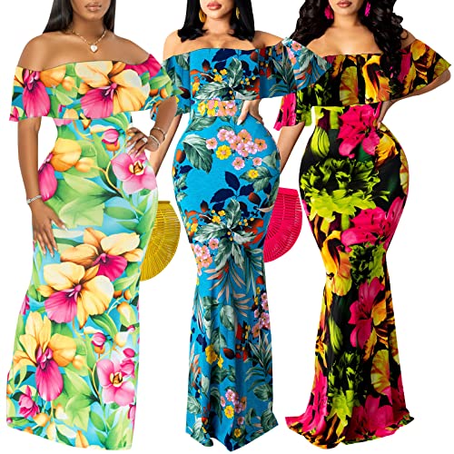 More information about Women's Off Shoulder Maxi Dress Sexy Hawaiian Floral Long Party Dresses