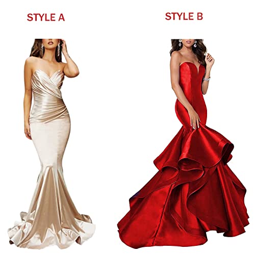 Womens Mermaid Prom Dress Sweetheart Long Satin Evening Gown with Ruffles 1