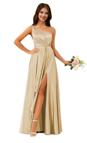 More information about One Shoulder Bridesmaid Dresses for Women with Slit Satin Formal Dresses Long Ruffled Prom Dress