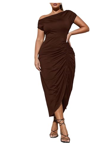Floerns Women's Plus Size Off The Shoulder Sexy Midi Dress Drawstring Ruched Slit Party Bodycon Cocktail Dresses 1