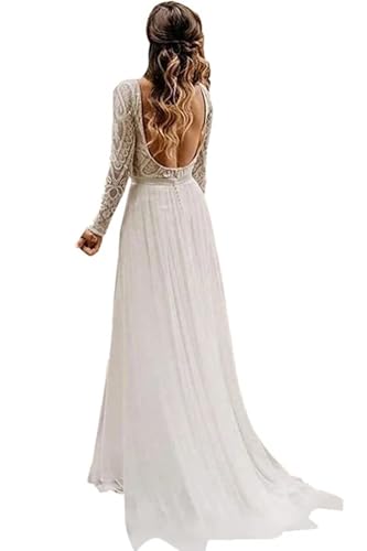 More information about Women's Lace Long Sleeve Wedding Dresses for Bride Simple Wedding Dress A Line Backless Beach Bridal Gown RWD11