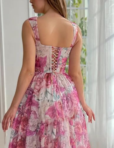 • Features: This cute Tulle flroal prom dress Print long/midi /mini Prom Dress Senior Rose Summer dress, meticulously crafted from printed mesh tulle, features an enchanting pattern of pink roses and green leaves that artfully embody the essence of romance and feminine grace.